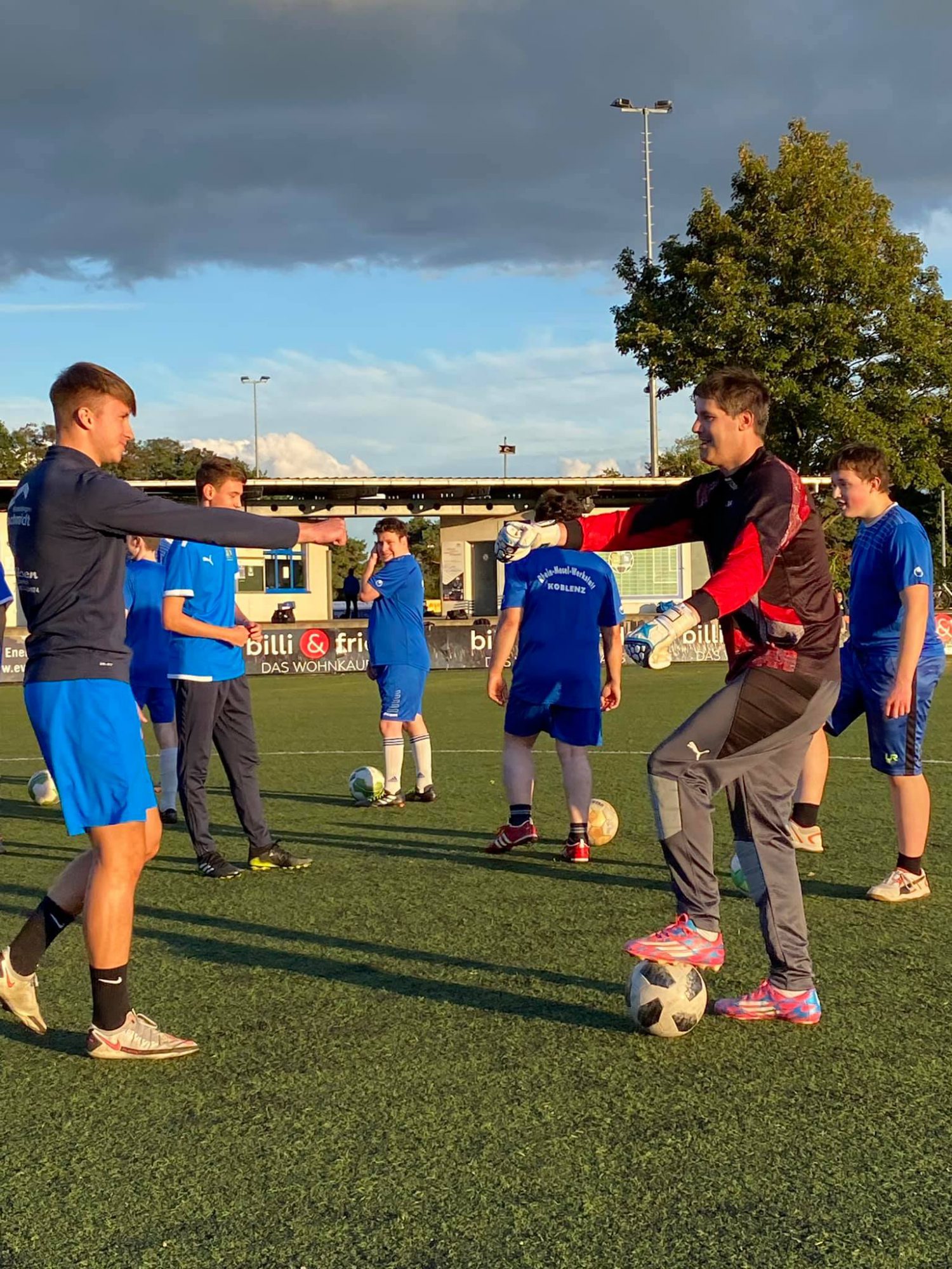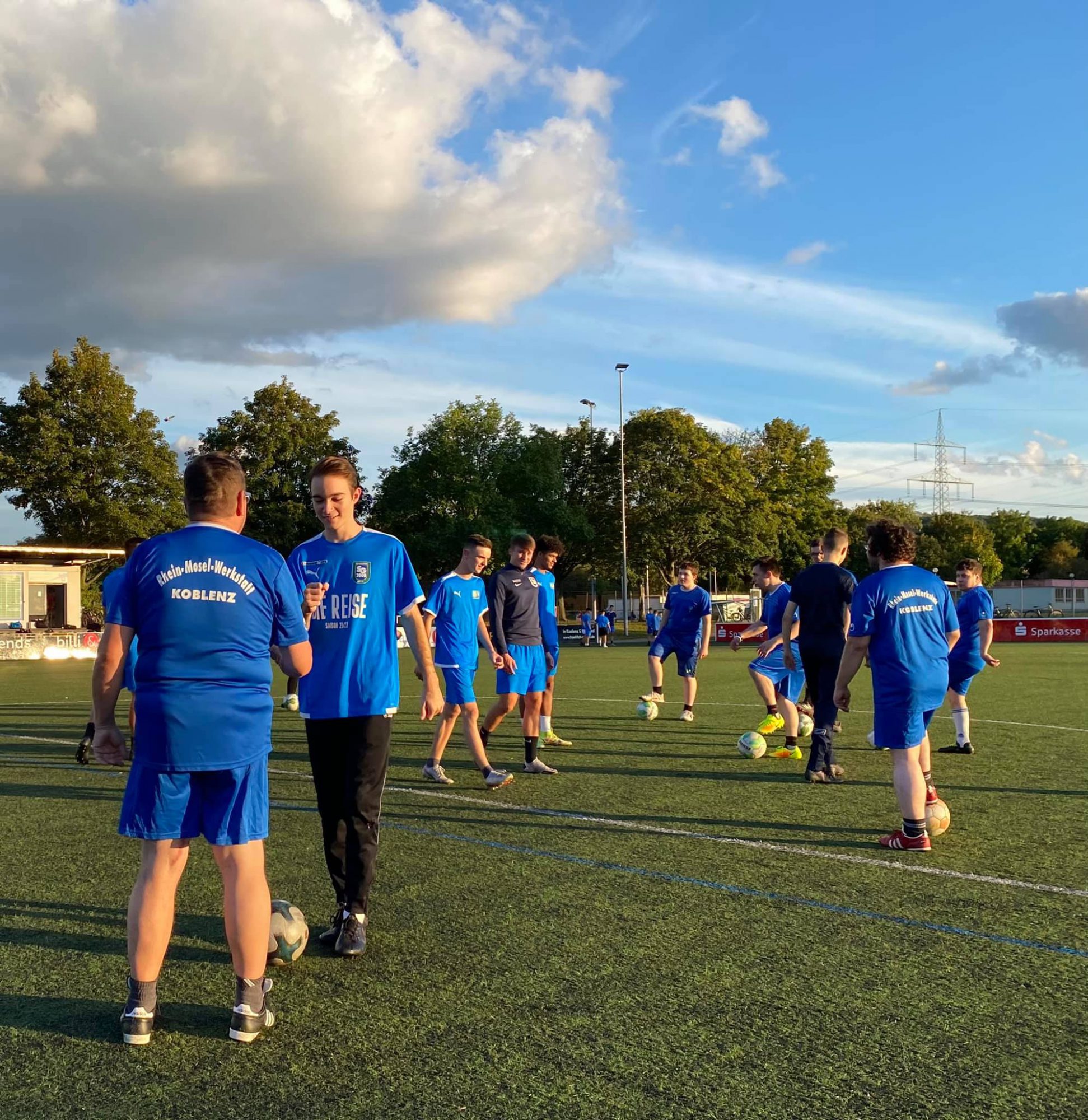 Fußball verbindet und ist oftmals mehr als nur ein Sport. Die U19-Fußballer der SG 2000 Mülheim-Kärlich luden am 4. Okober zu einer inklusiven Trainingseinheit auf dem Sportgelände am Schul- und Sportzentrum. Unter der Leitung von Trainer Thomas Theisen absolvierten viele Fußballer aus den Reihen der Rhein-Mosel-Werkstatt ein gemeinsames Training mit den jungen Spielern der SG 2000 die in der Rheinlandliga Staffel 1 nach 5 Spielen ungeschlagen auf Platz 2 stehen. Neben vielen klassischen Trainingsinhalten wie beispielsweise Passspiel, Dribbling, Torschuss und Spielformen war aber auch das Kennenlernen und der Austausch untereinander von großer Bedeutung. Schließlich Stand der Spaß bei solch einer Veranstaltung im Vordergrund. Die RMW-Kicker waren begeistert und sichtlich zufrieden, aber auch die Fußballer der U-19 haben sich sehr über diese inklusive Trainingseinheit gefreut. Gemeinsam ging es nach Trainingsende noch ins Vereinsheim der SG 2000, um sich nach einer intensiven Trainingseinheit zu stärken. Eine Wiederholung ist für die Hallensaison bereits klar besprochen.