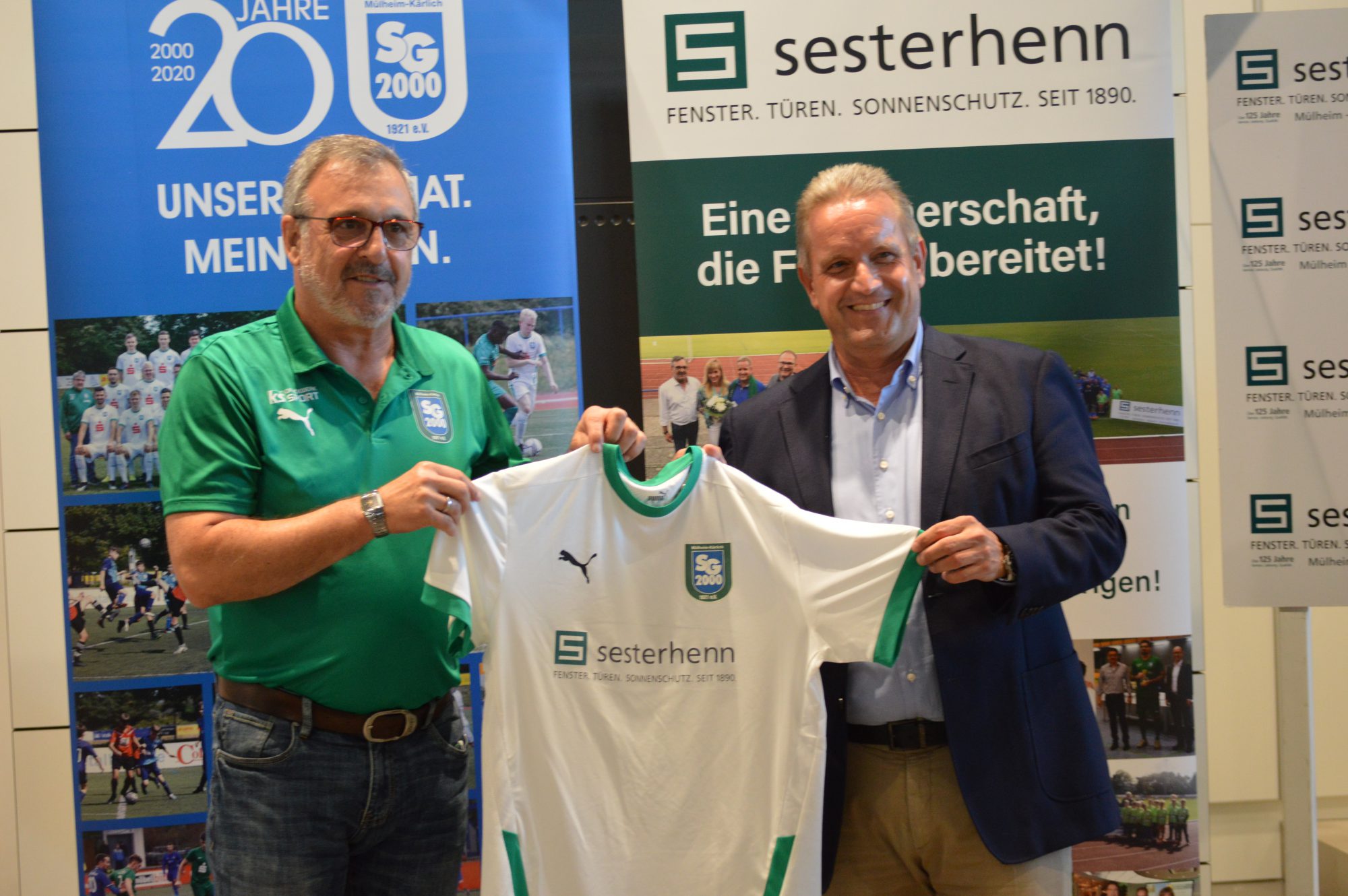 - Bernd Müller überreichte dem Gastgeber und langjährigen Sponsor Johannes Sesterhenn (rechts) ein persönliches Fan-Trikot für die neue Saison.
